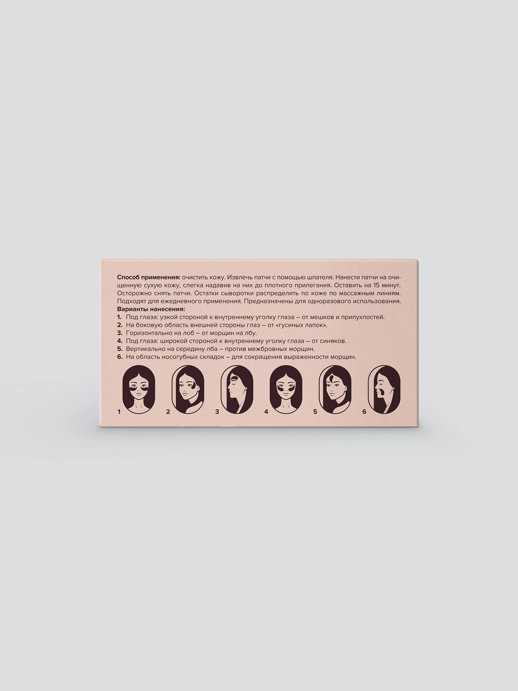 Очистить кожу. Извлечь патчи с помощью шпателя. Нанести патчи на очищенную сухую кожу, слегка надавив на них до плотного прилегания. Оставить на 15 минут. Осторожно снять патчи. Остатки сыворотки распределить по коже по массажным линиям. Подходят для ежедневного применения. Предназначены для одноразового использования.