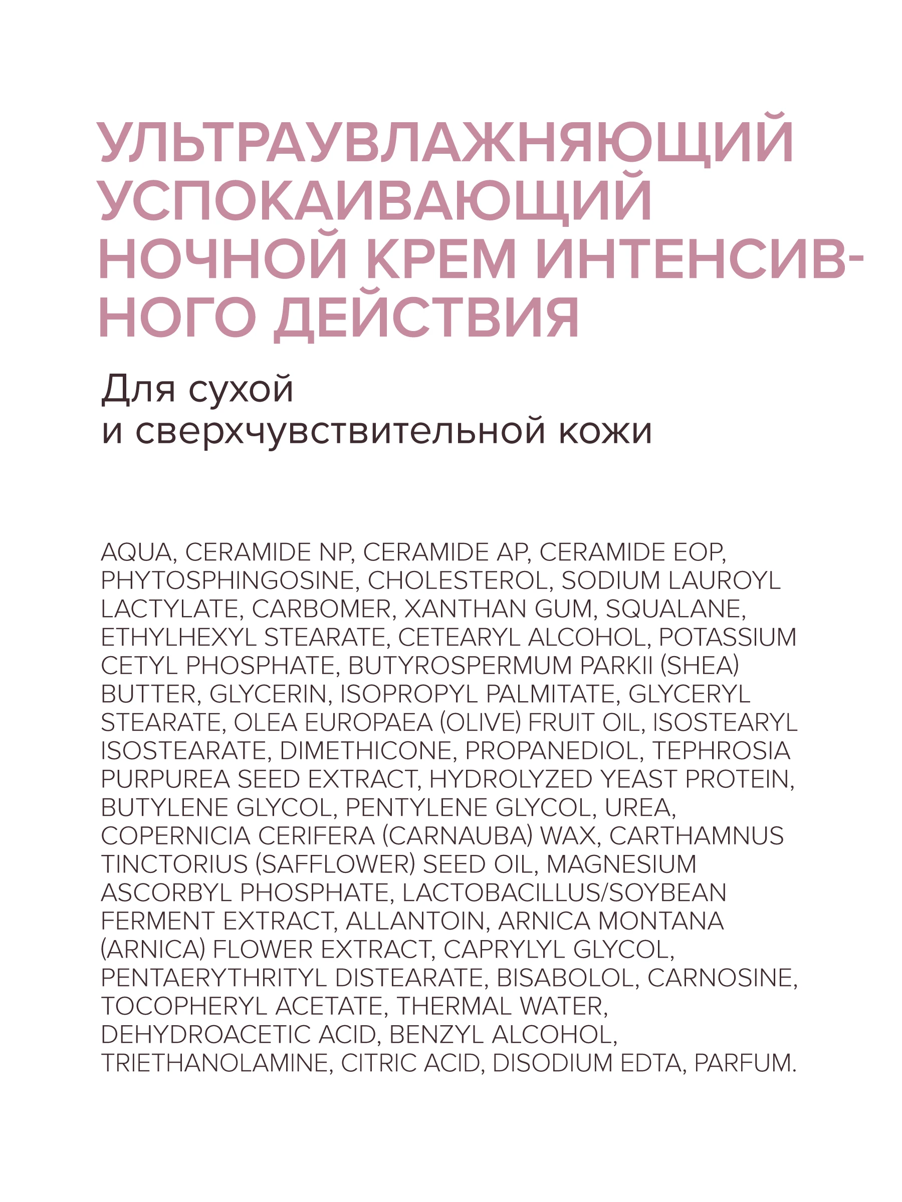 Ультраувлажняющий успокаивающий ночной крем интенсивного действия для сухой и сверхчувствительной кожи