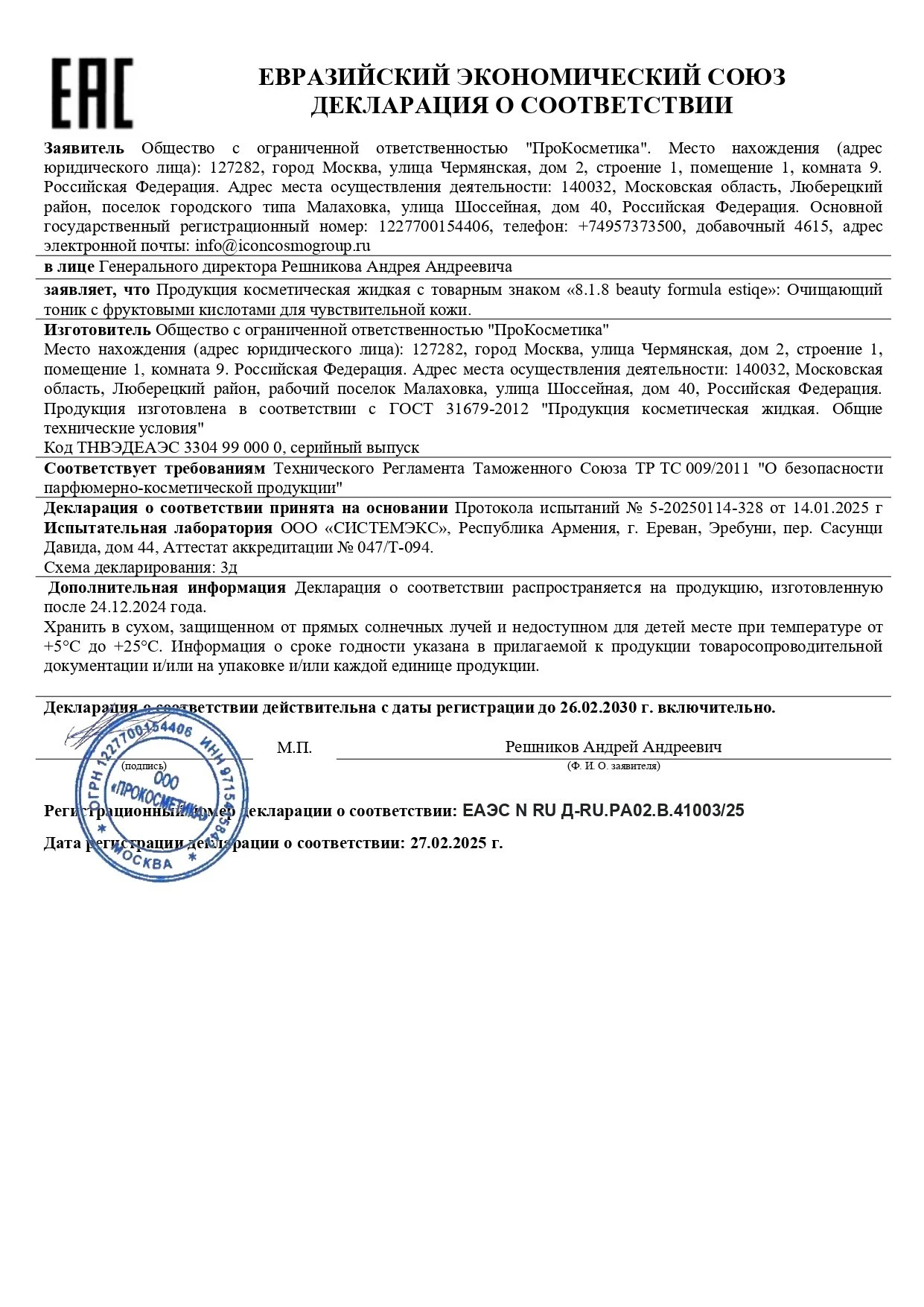 ПРОИЗВОДИТЕЛЬ: ООО «ПроКосметика» (Россия)